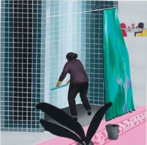 Next, Ramiro Gomez’s response a few decades on, “Woman Cleaning Shower in Beverly Hills”