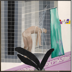 In a swing by the National Museum of American Art and National Portrait Gallery to see the wonderful new paintings of the Obamas, I caught a show on work, The Sweat of their Face. Lots of arresting images, perhaps none more than a riff on a David Hockney painiting from 1964, Man Taking a Shower in Beverly Hills, http://www.tate.org.uk/art/artworks/hockney-man-in-shower-in-beverly-hills-t03074. First the original,