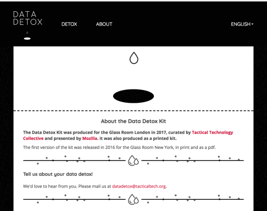 Tipped by a friend, I just learned about “The Data Detox,” a sequential 8-day program for reviewing, cleaning up/deleting, and rethinking the data trails you leave (and people profit from and may exploit in other ways).